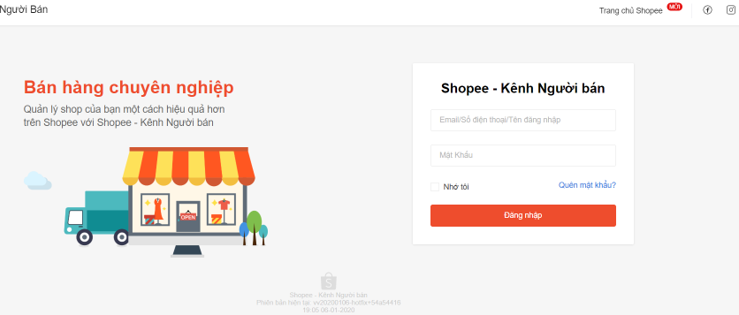 Bước 1: Đăng nhập Kênh Người Bán