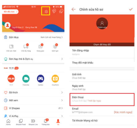 2. Cách xác minh số điện thoại cho tài khoản trên Shopee
