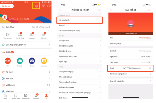 5. Làm thế nào để cập nhật Email gắn với tài khoản shopee