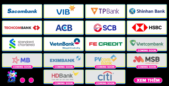 Tất cả các loại thẻ tín dụng Visa, Mastercard, JCB và/hoặc Amex đều có thể thanh toán trả góp trên sàn thương mại điện tử Lazada. Tuy nhiên, với chương trình ưu đãi Trả góp 0% Lãi suất của Lazada hiện nay áp dụng cho 16 ngân hàng sau: