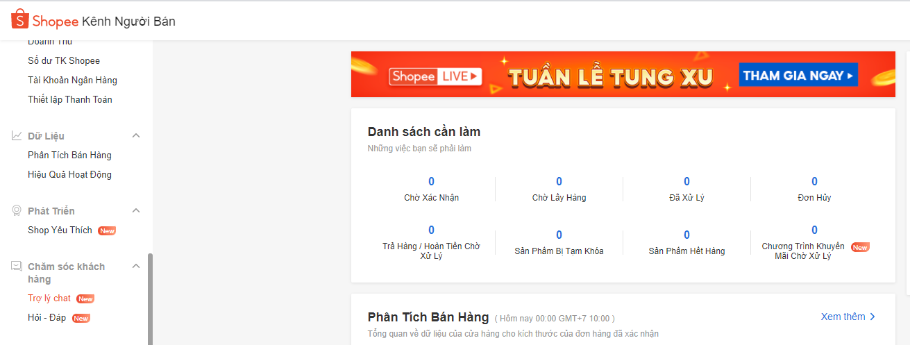 Bước 1: Đầu tiên truy cập kênh người bán, tại mục chăm sóc khách hàng >> Trợ lý chat