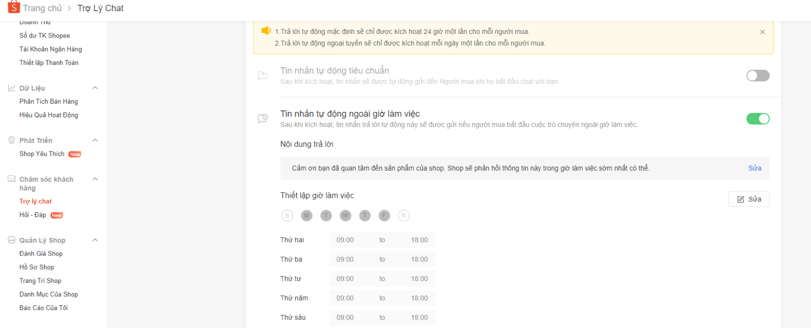 Để hỗ trợ giải đáp thắc mắc của người mua mọi lúc mọi nơi ngay cả thời gian ngoài giờ làm việc của shop, bạn có thể tạo tin nhắn tự động ngoài giờ làm việc bằng cách sau: