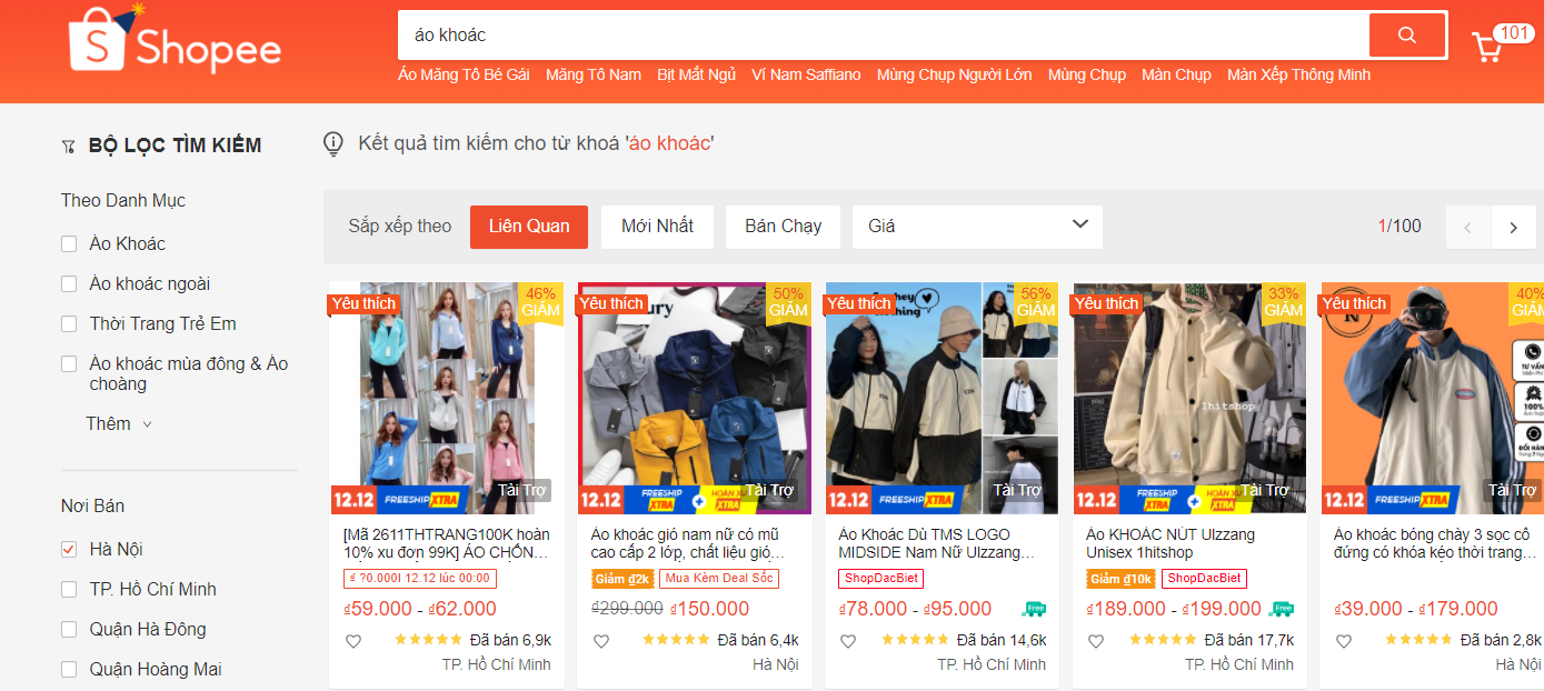 Ví dụ: Địa chỉ bạn tại Hà Nội bạn sử dụng bộ lọc chọn quần huyện gần bạn, từ đó hệ thống sẽ tìm kiếm gian hàng theo nhu cầu tìm kiếm của người dùng.