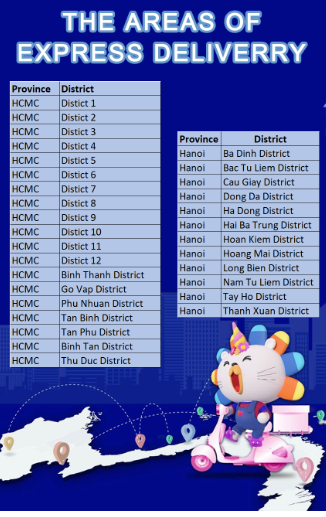 NHững khu vực áp dụng dịch vụ chuyển phát nhanh