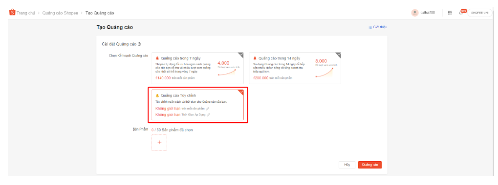 Bạn nên chọn gói 14 ngày để phân bổ thêm thời gian cho Quảng Cáo nhằm mở rộng khả năng hiển thị và doanh số bán hàng của bạn.