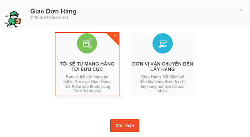 Bạn có thể chọn 2 phương thức : Tự mang đến bưu cục gần nhất hoặc Đơn vị vận chuyển đến lấy hàng.
