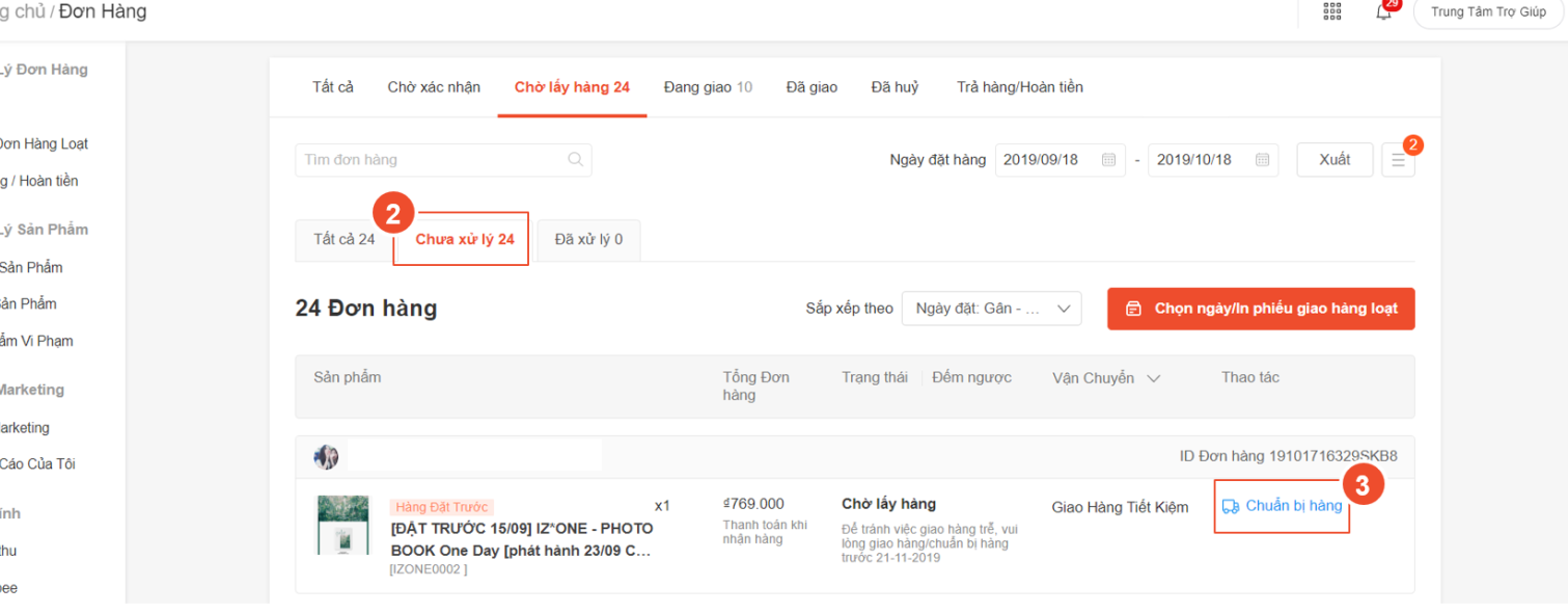 Nếu hàng đang hết hạn, chưa sẵn có, bạn cần nhanh chóng đi lấy hàng về shop nhé rồi mới nhấn “Chuẩn bị hàng” nhé.