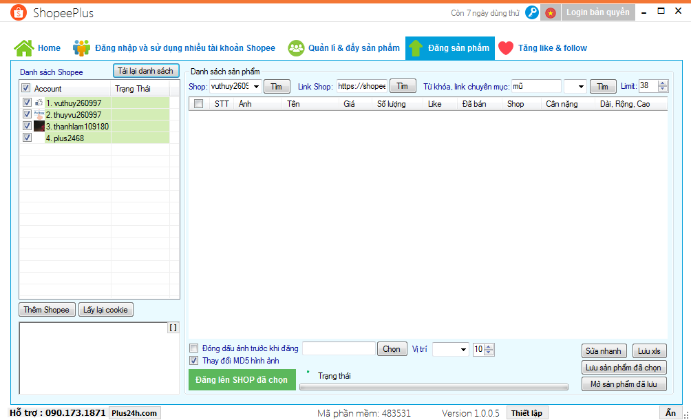 Phần mềm ShopPlus hỗ trợ bạn copy hàng loạt các sản phẩm và đăng lên nhiều shop khác nhau, giúp bạn mở được nhiều shop trên Shopee..