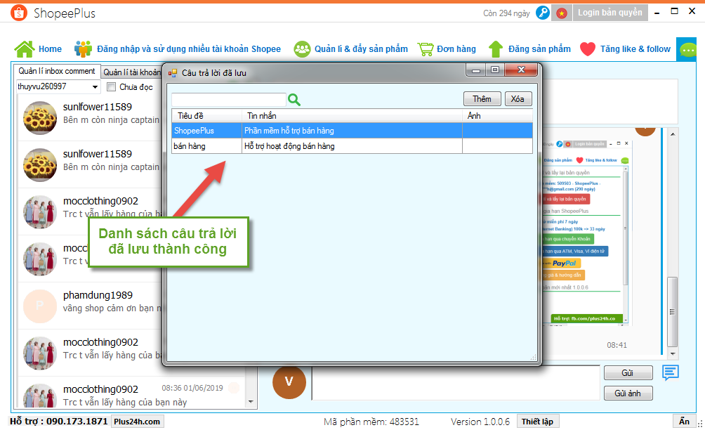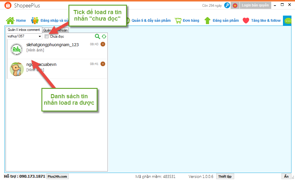 Chú ý: Phần mềm sẽ load 3 ngày và 20 tin nhắn mới nhất trong hộp chat shopee.