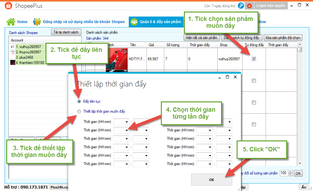 - “Đẩy liên tục”: Tick để đẩy sản phẩm liên tục trên Shopee.