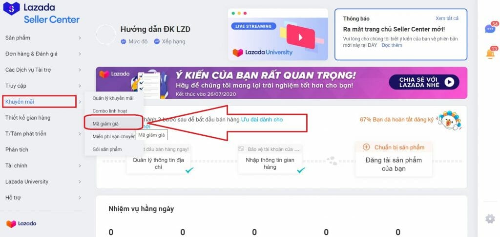 Cách tạo mã giảm giá trên Lazada cho người bán